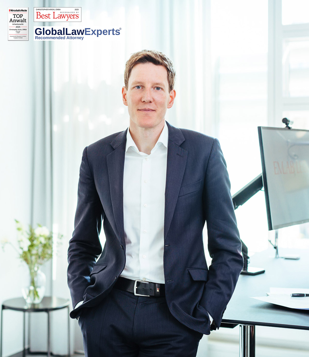 Christopher advises on all aspects of employment and labour law with a special focus on works constitution and collective bargaining law. He specializes in complex restructurings, employee participation matters (including the formation of SEs), compensation schemes (for employees as well as board members) and occupational pension schemes (including supplementary pension schemes in the public sector). German magazine “Wirtschaftswoche” ranks Christopher among the best German business lawyers in the field of employment law. Christopher is also ranked among the leading employment and business lawyers in Germany by international magazine “Best Lawyers” as well as German magazine “Handelsblatt”. Christopher speaks German and English.